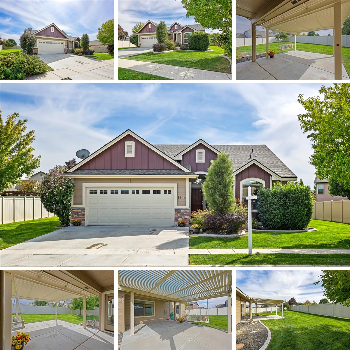 Built by quality-focused Eaglewood Homes, this beautifully maintained 1,473 sq ft residence offers a thoughtful split-bedroom design with its separate wing for added privacy. The entryway creates a welcoming first impression. The living area with its vaulted ceiling, lots of natural light and cozy fireplace creates an inviting atmosphere. The luxury vinyl plank flooring throughout creates an upscale feel. The open kitchen features stainless steel appliances, a pantry and breakfast bar. The spacious primary suite features a walk-in closet, double vanities, and a step-in tiled shower. You’ll fall in love with the backyard which offers an extended covered patio, lush landscaping and charming swing – the perfect spot to unwind or entertain while enjoying crisp fall days.