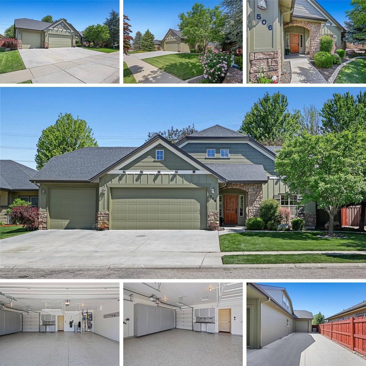 Welcome home to this beautifully crafted residence in Copper Basin, centrally located in the heart of Meridian near restaurants and shopping. Enjoy timeless curb appeal with stone accents, freshly painted exterior, and lush, low-maintenance landscaping. The main-level primary suite and office are complemented by warm wood-wrapped windows, knotty alder doors, and quality finishes. A spacious great room boasts beautiful backyard views and a cozy stone fireplace. The kitchen offers granite counters, alder cabinetry, stainless steel appliances, and an open layout perfect for entertaining. Upstairs are two bedrooms, a full bath, bonus room, and generous storage. Additional highlights include a wrought iron staircase, central vacuum, water softener, and a 3-car garage with epoxy floors, built-in cabinetry, and a workbench.