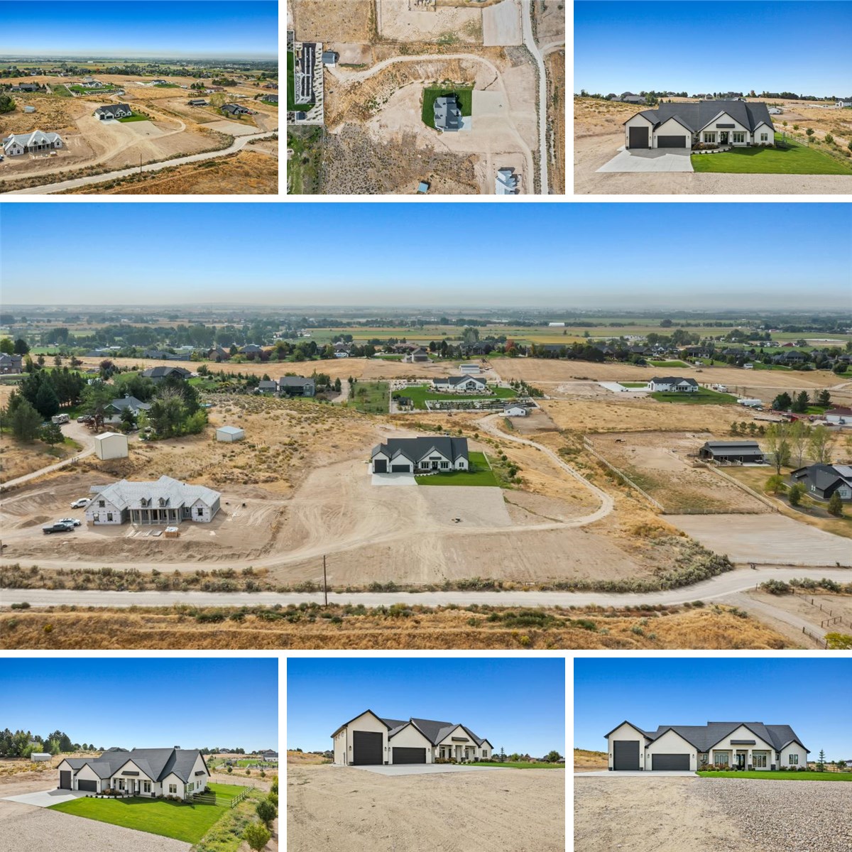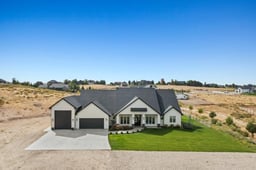 Luxury living on 5.05 acres with a private well, barn, small arena, and fenced yard. Ideal for toys, animals, hobbies. Built 5 years ago, this 3,369 sf single-level home offers 4 bedrooms, 3.5 baths, a bright great room, separate family room, formal dining, and an office. The kitchen features a large island, walk-in pantry, and high-end finishes. A floor-to-ceiling stone fireplace anchors the great room, while the vaulted primary suite features a designer linear fireplace, spa-style bath, and large walk-in closet. Step out to a covered patio overlooking a well-kept yard and wide-open views. The 5-car garage includes a 40'x16' RV bay and storage. Quality details - tall ceilings, extensive millwork, LVP/Tile, and thoughtful built-ins. Ultra-quiet setting, accessed via a privately maintained gravel lane with a recorded road-maintenance agreement, secluded yet minutes to shopping, dinging, and conveniences. A rare turnkey acreage combining refined single-level living, equestrian utility, and panoramic view.