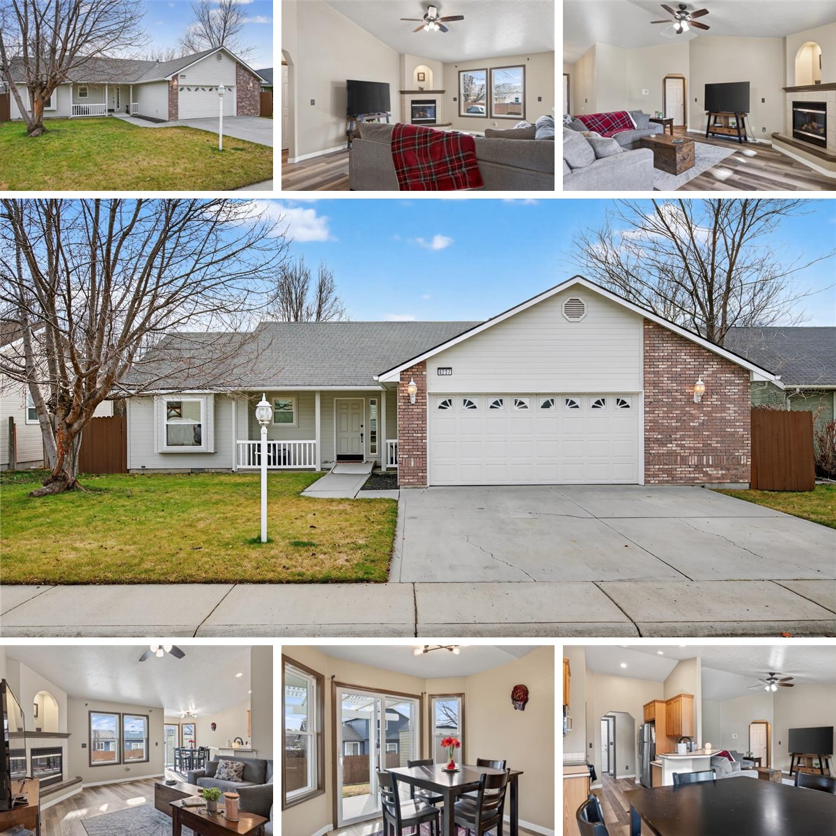 Remarkable single level home in the heart of South Boise just minutes to Costco and the Freeway. The front door opens to reveal an open floor concept and a large living room with vaulted ceiling anchored by a beautiful fireplace. The kitchen and eating area are well lit with natural light that stream through the brand new windows and spill across the new LVP flooring that is throughout the home. The split level design allows for privacy w/ the two guest bedrooms and bath on the one side and the master retreat on the other. There is plenty of room in the oversized fully insulated 2 car garage already furnished with high end Coleman cabinets and work bench. Updates include: New Champion windows w/ transferable lifetime warranty '25, Exterior Paint '25, LVP flooring through the entire house '25, fridge '25, range '25, microwave '25, D/W '24, refurbished and stained fence '25, Toilets '25. The garage door to be replaced before closing and a brand new 30 year Architectural Roof will be professionally installed before closing weather permitting!